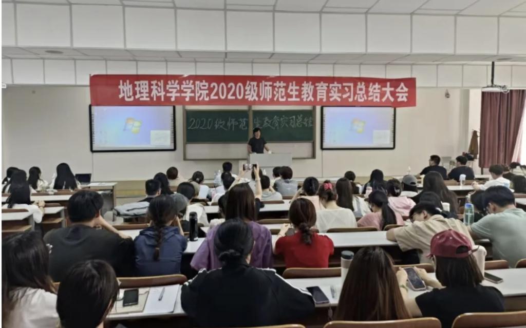 5月16日下午15:00,MILE米乐官方网站举办了2020级师范生教育实习总结大会。出席本次活动的有2021级地理科学汉班全体学生、地理科学系主任阿荣老师、副主任郭恩亮老师。由赵伟老师担任本次活动的主持人,师生共计158人。此外,活动邀请到2020级七位优秀且经验丰富的学姐学长,分享他们在教育实习中的见闻、感悟。