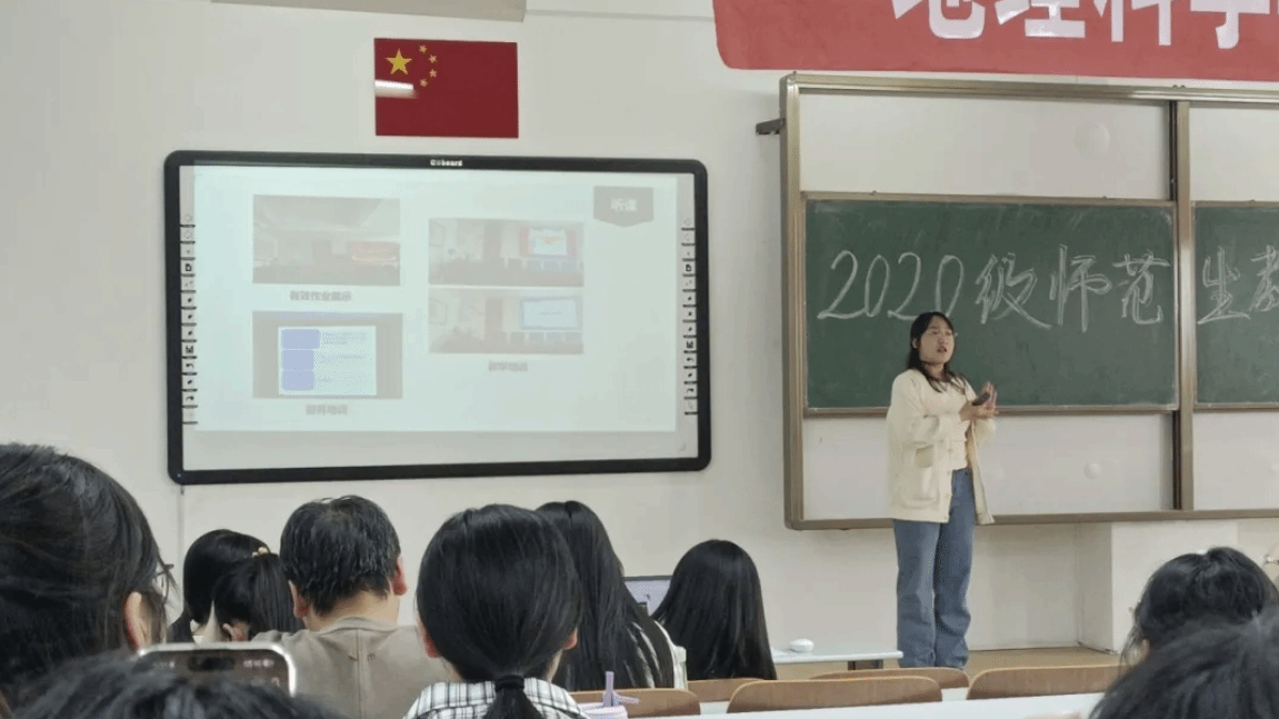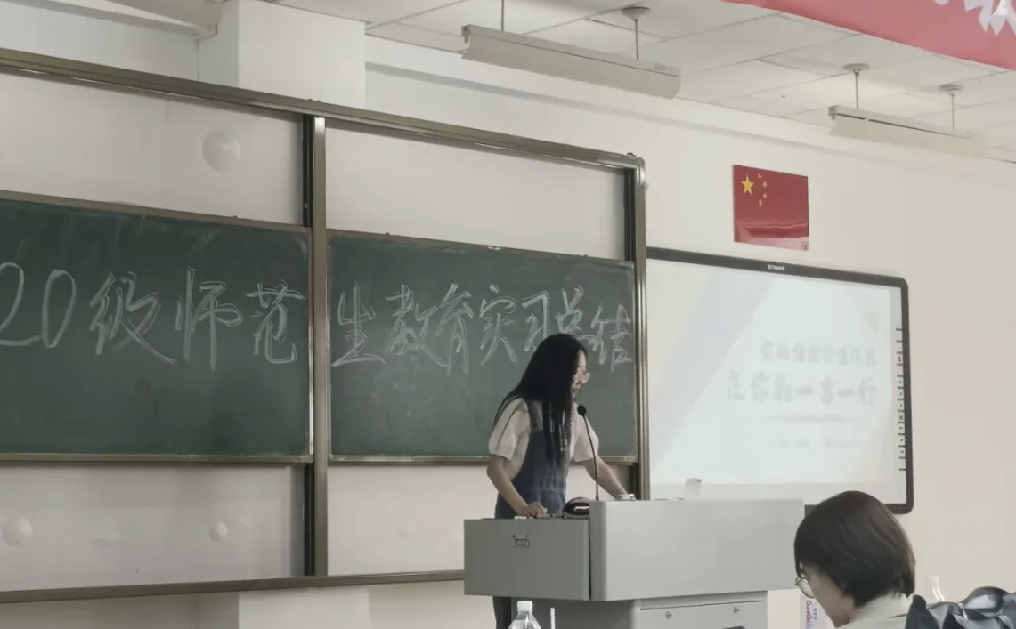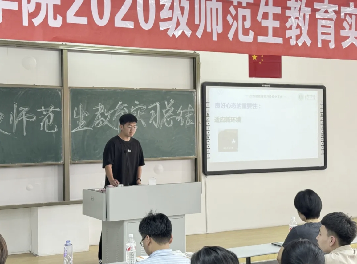孙晓宇同学介绍了实习校园的环境,强调了从“学生”到“教师”的身份转变。分享了教学过程中的趣事。鼓励同学们要对地理教育保持热爱,将热爱转化为对学生的关心和呵护。同样,也要通过思考如何激发学生的兴趣,打造有趣的课堂氛围。