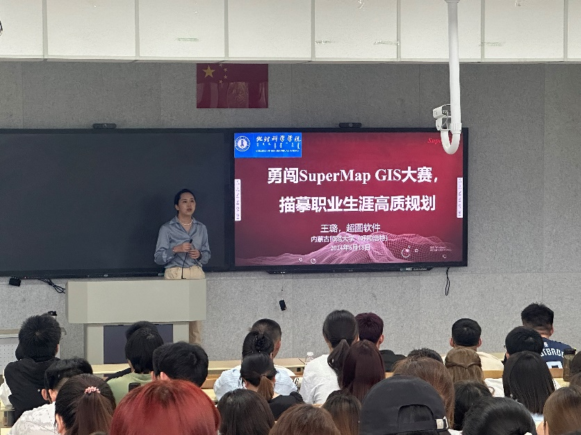 在会上,王璐老师凭借她深厚的经验和独到的见解,以大赛经验分享和职业规划为主题,进行了详尽而生动的阐述。她首先带领同学们回顾了“超图杯”校园邀请赛及全国高校GIS大赛的发展历程,详细介绍了参赛的基本状况和流程,特别强调了团队协作、导师选择和数据资源的重要性。她还向同学们传授了如何读题、选题、答题的“洋葱规则”,并鼓励大家积极备赛,开阔学习视野。