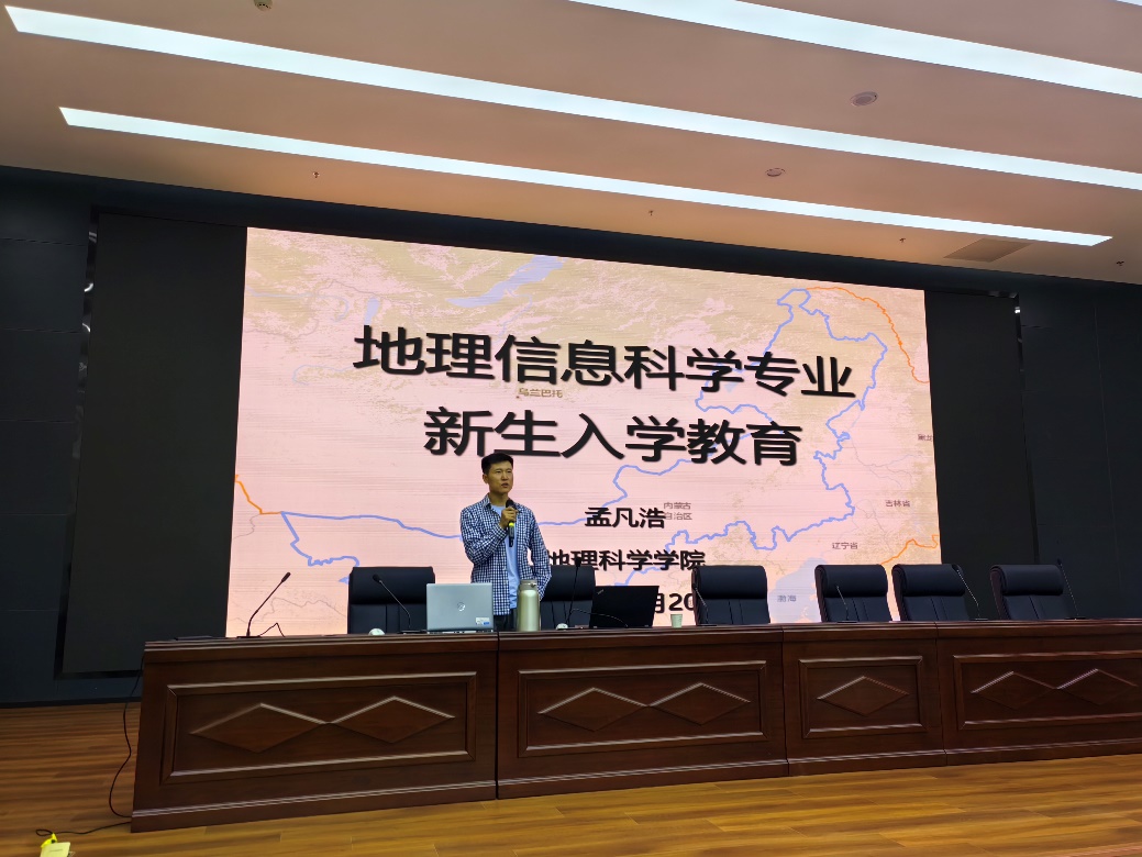 接着,孟凡浩副主任详细介绍了地理信息科学专业的特点和发展方向。他指出,随着地理信息技术的飞速发展,地理信息科学在智慧城市建设、资源环境管理、生态保护等多个领域发挥着关键作用,社会需求不断增长。他还为新生们展望了未来的学习路径,指出该专业不仅重视理论学习,还十分注重实践操作和创新应用,能够为学生提供广阔的职业发展空间。