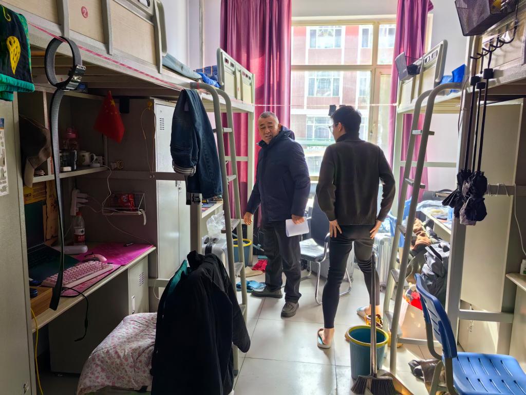 通过检查发现,大多数宿舍安全状况良好,但仍有部分宿舍有不拔插座或者插座过多现象,少数学生安全防范意识较弱。在学生寝室里,云书记与学生亲切交流,他强调,寝室是学生的生活场所,一定要注意消防安全,不能使用大功率电器,要对自己负责、对同学负责、对家人负责。