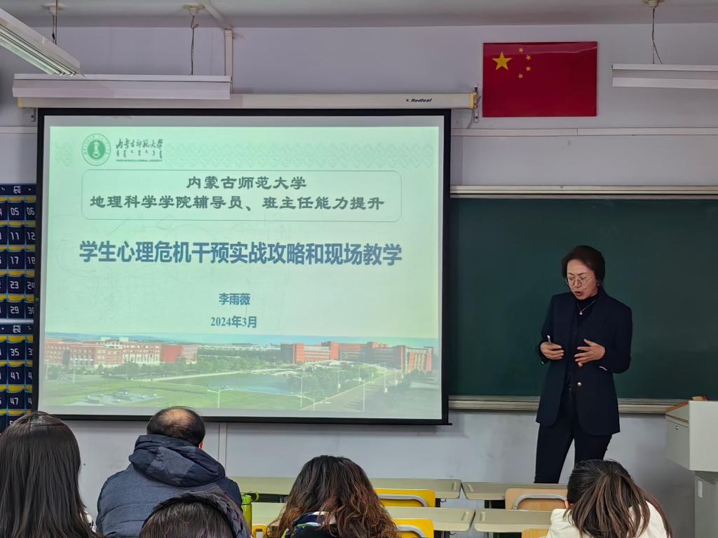 为全面落实教育部等多部门联合发布的《全面加强和改进新时代学生心理健康工作专项行动计划(2023—2025年)》,提高辅导员、班主任对学生心理危机的识别和干预意识,提升学院学生心理危机干预工作水平,完善心理危机干预,健全预警体系,优化协作机制,创建平安校园,3月7日下午14:30,MILE米乐官方网站组织全体班主任、专职辅导员等40余人在赛罕校区田楼122举办了“MILE米乐官方网站辅导员、班主任能力提升——学生心理危机干预实战攻略和现场教学”培训班,培训由学院党委书记李雨薇同志主讲。