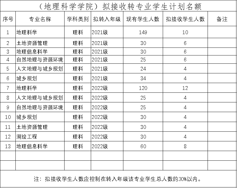 1. 各专业转入学生人数应控制在本专业班级学生人数的30%以内,含院内和跨院转入学生。