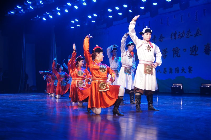 此次舞蹈大赛共有15支表演队伍,近1000名学生观看了整场演出。舞蹈 《佚名》、 《good boy》 、 《卫拉特青年》 、 《crazy high》 等将比赛一次又一次地推向高潮,观众们的呐喊与喝彩声为比赛营造了激动人心的氛围。更有黄晓君老师、那顺达来老师为我们演唱了动听的蒙语歌曲,还有十佳歌手Narlag组合友情出演,为我们演唱了美妙悦耳的《Jammac》。