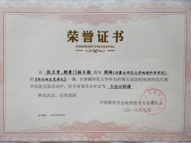 由中国教育学会地理教学专业委员会主办, 新疆师范大学和华东师范大学承办的全国第五届高校地理师范生教学技能大赛于9月30日在乌鲁木齐落下帷幕。本次大赛全国共有71所高校的112名本科生和37名研究生参赛。米乐官网共有2位选手参赛,均在比赛中取得优异成绩。由张卫青教授和朝鲁门副教授指导的MILE米乐官方网站2017级学科教学(地理)专业研究生周琳同学获得 “大会示范课奖”并在大会现场进行展示;2017级学科教学(地理)专业研究生靳彦云同学获得“示范课奖”。