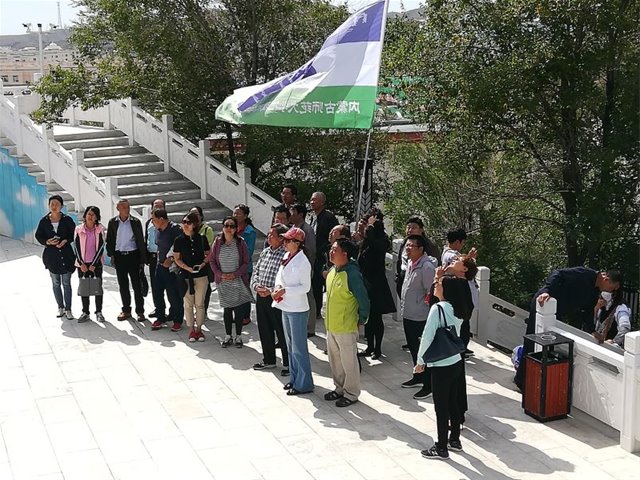 在达茂旗博物馆、百灵庙抗日武装暴动纪念碑前,全体党员和教工认识了“百灵庙暴动”这一重大历史事件。1936年2月21日,百灵庙蒙政会保安队千余名爱国官兵,在中共西蒙工委书记乌兰夫的领导下,打响了内蒙古抗日武装暴动的第一枪,彻底粉碎了日本侵略者推行的“征服中国必先征服满蒙”的罪恶阴谋。抗日武装暴动骑兵群雕纪念碑就是为纪念此次事件在1989年兴建的,2011年被列为自治区爱国主义教育基地,全体党员和教师在纪念碑前合影留念。