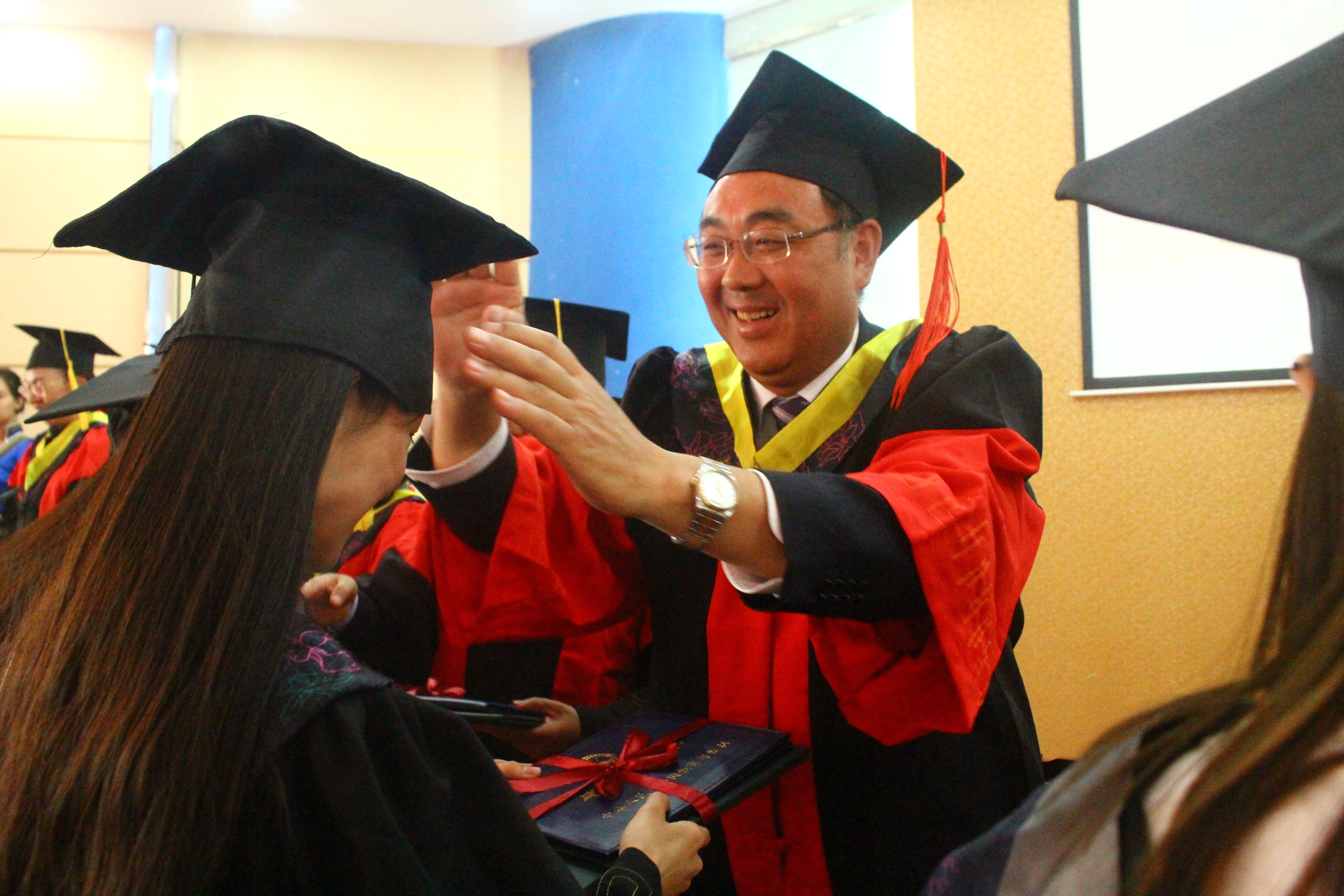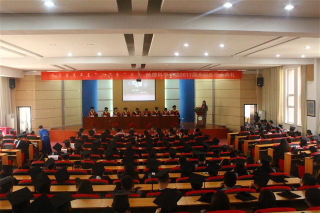 又是一年毕业季、又是一年丰收时,5月12日上午,MILE米乐官方网站2017届本科生毕业典礼在盛乐校区科技楼报告厅隆重举行。内蒙古师范大学党委副书记、纪委书记高云峰研究员,内蒙古师范大学学生工作处处长斯钦研究员,内蒙古师范大学就业指导处副处长王志强教授,MILE米乐官方网站院长包玉海教授,MILE米乐官方网站党总支副书记、副院长张裕凤教授以及学院部分教师代表、毕业班全体班主任和毕业生参加了典礼。