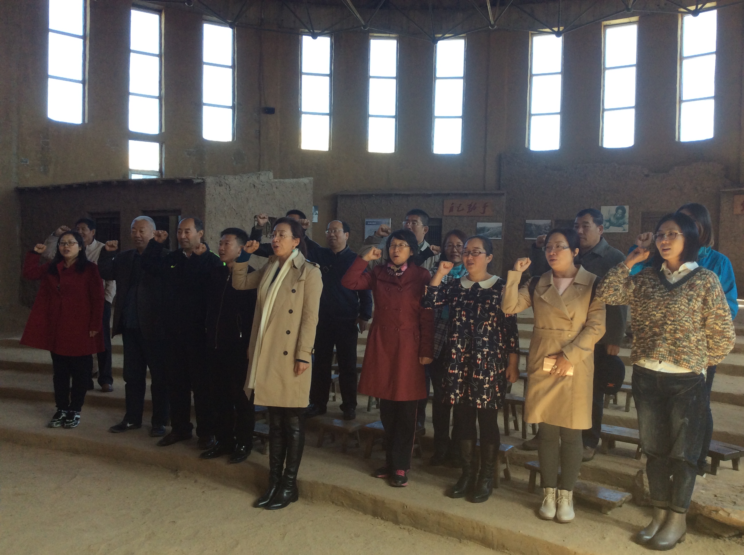 党员教师们通过参观沙盘演绎、文物、图片展示和场景复原等展示和场景复原等形式,感受了一部部大青山军民与日寇侵略者浴血奋战的历史画卷,缅怀革命先烈们的丰功伟绩。组织党员老师重温入党誓词,体会做合格共产党员的每一项要求。一路上看到如今的“武川老区”,正在进行新一次的“绿色革命”—退耕还林还草、封围转移、保护生态、建设秀美山川,大力发展绿色产业,建设中国的马铃薯基地。