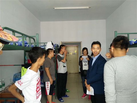 9月7日下午3时,老师一行又亲临新生宿舍,检查新生入住情况,耐心介绍生活环境,使新生减少对新环境的陌生感,加快了新生进入新生活新状态的速度,各班级班主任也对本班级学生有了更加深入的了解。
