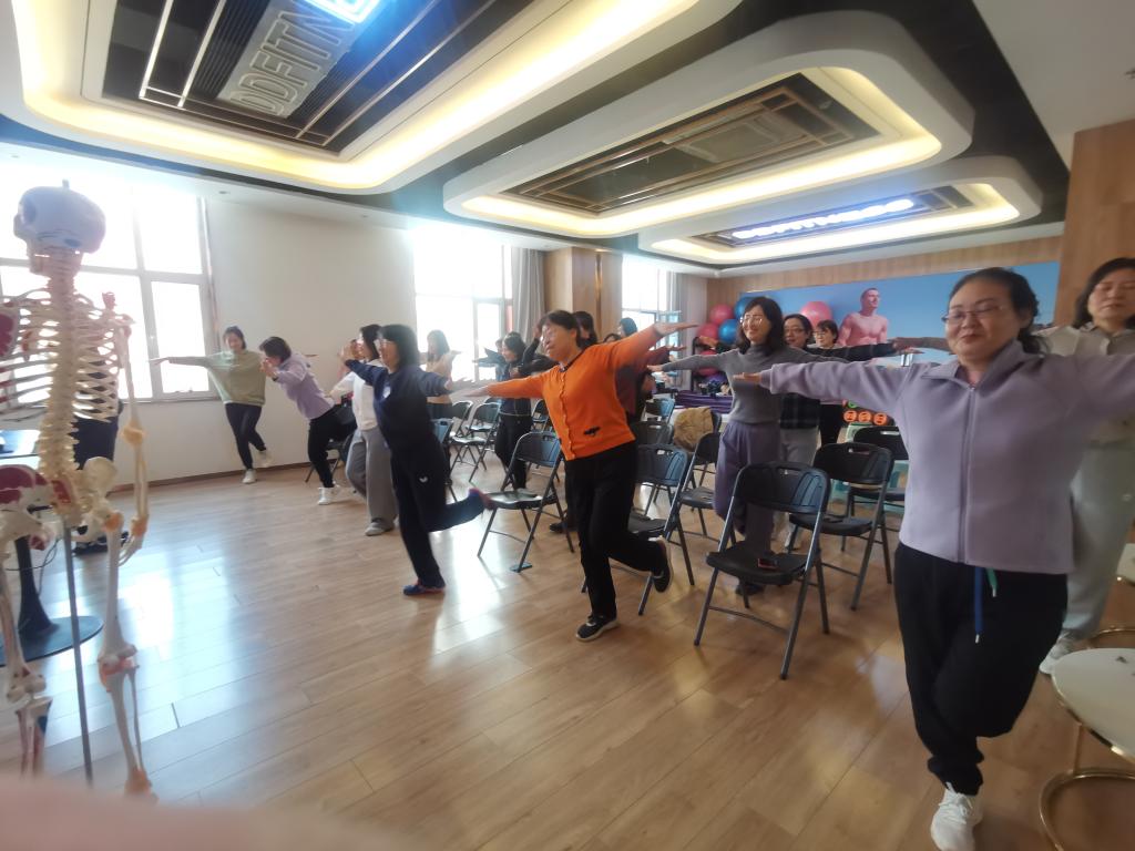 活动中,米乐官网“女神”们热情高涨、积极参与并跟练健身动作,充分唤起了强身健体、健康生活理念,快速融入到了健身状态。