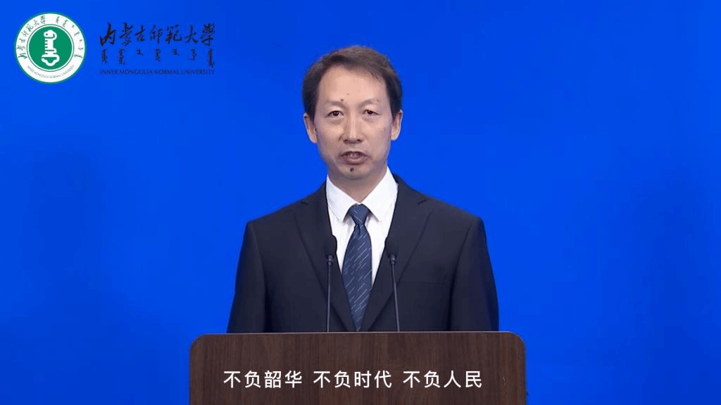 在雄壮的国歌声中,毕业典礼正式拉开帷幕。典礼首先播放了校领导寄语,内蒙古师范大学党委书记阿拉坦仓,党委副书记、校长李树林代表学校全体教职工祝贺毕业生顺利完成学业,开启人生、事业的新篇章,嘱托同学们要立足当下,心系民族未来;要敢于担负时代使命,牢记国之大者,铭记党的教诲,不负韶华、不负时代、不负人民。