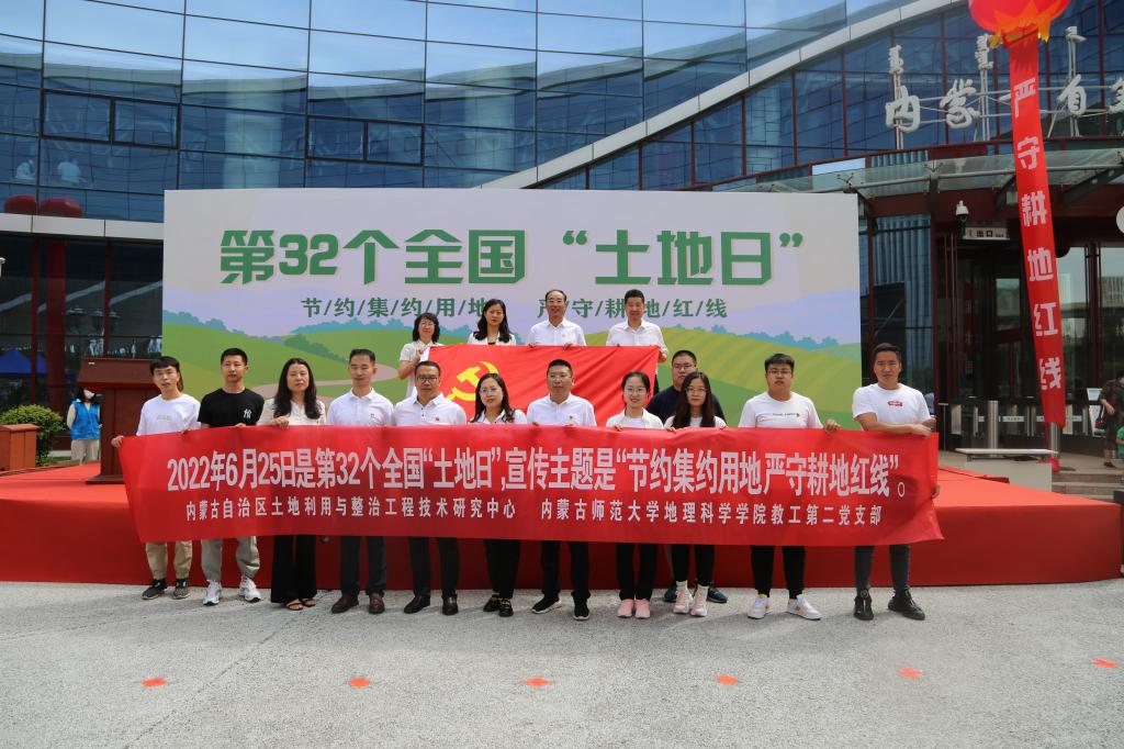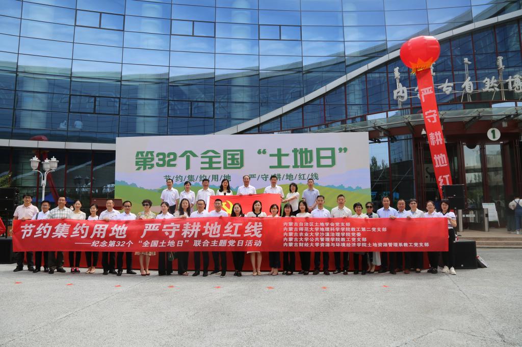 2022年6月25日在内蒙古自然博物馆隆重举行本次宣传大会。大会由内蒙古自然资源厅主办,内蒙古土地学会承办。自治区自然资源厅一级巡视员、内蒙古土地学会理事长王富友,自然资源厅党组成员、副厅长郭心语,内蒙古国土空间规划院党委书记、院长杨俊杰以及各高校知名专家学者应邀出席开幕仪式。MILE米乐官方网站党委书记、内蒙古土地学会副理事长张裕凤教授参加了开幕仪式。米乐官网教工第二党支部与内蒙古自治区土地学会党支部等联合开展“土地日”主题党日活动。教工第二党支部教师张惜伟、王考、黄晓君、叶志刚和国土资源系主任周瑞平老师、还有研究生同学代表一同参加本次大会。