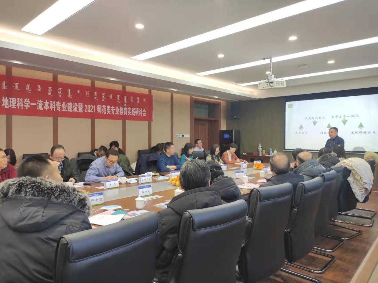 为进一步贯彻落实党的十九大精神,培养高素质教师队伍,提高师范类专业人才培养质量,按照国家教育事业发展“十四五”规划工作要求,根据教育部印发《普通高等学校师范类专业认证实施办法(暂行)》等文件精神,2021年12月30日,MILE米乐官方网站教工第一党支部在赛罕校区文史楼2号会议室召开了“协同育人 合作共赢”——地理科学一流本科专业建设暨2021师范类专业教育实践研讨会。会议由地科院教工第一党支部萨楚拉副院长主持,教务处副处长乌兰格日乐、教师发展与教学评估中心孟根巴根教授,呼和浩特市部分中学的领导和教师代表,教工第一党支部书记乌敦和党员老师、师范认证工作组成员参加了本次会议。