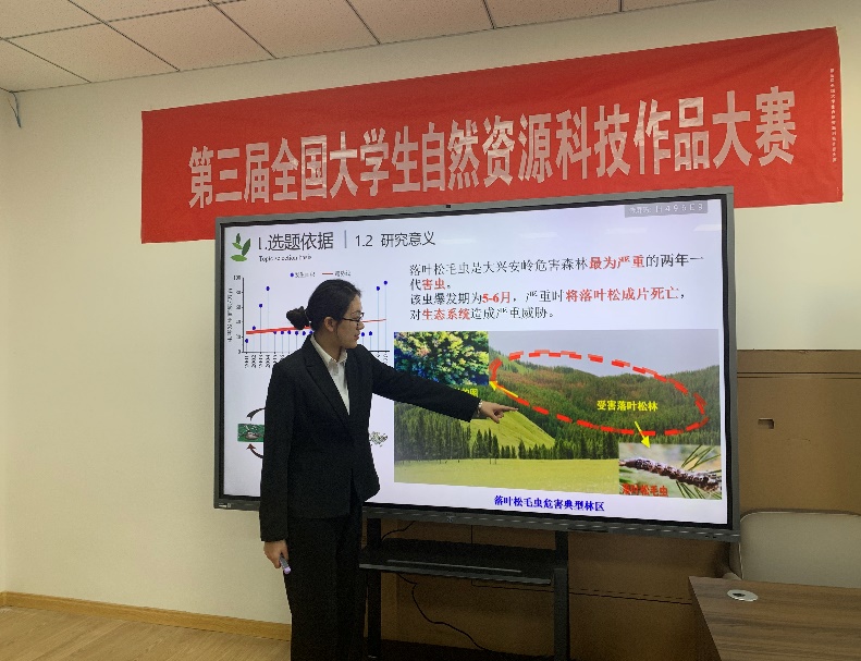 本届大赛分为作品提交及初评、作品甄选及复评以及决赛终评答辩等环节。在初赛阶段,米乐官网“护绿使者”团队在黄晓君老师的指导下,围绕“生态保护背景下无人机不同航高对落叶松毛虫虫害多光谱遥感监测精度的影响分析”,积极开展相关数据分析与实地调研,精心打磨科技成果论文。论文数据翔实,分析深入,方法得当,并顺利经过层层遴选,最终入围决赛(全国仅有50项)。