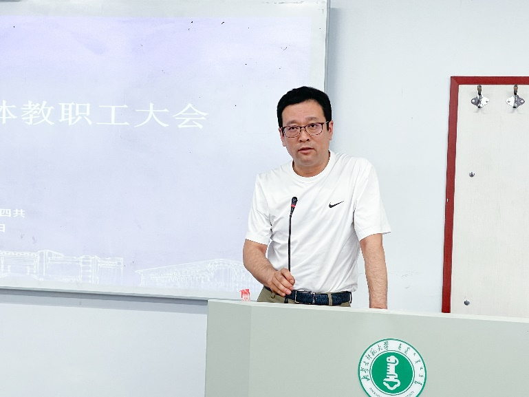 李雨薇书记从党务、宣传以及就业工作等方面对近期工作进行了通报与部署。她指出要深化巡视巡察工作,将整改工作融入学院各项工作中;倡议全院所有教师要做好学院宣传工作;要求所有教职工党政一致,针对性地向毕业生一对一推送就业信息,紧密追踪学生就业进程及思想动向。