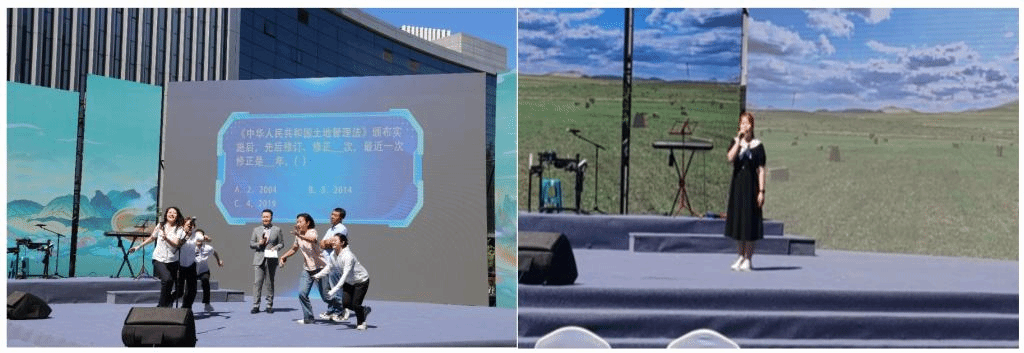 在“大地歌会”表演区,米乐官网研究生祁林玉演唱了“敕勒歌”,深情表达对祖国大地的热爱;在互动区,设置与土地相关的知识竞赛题目,姜洪涛老师带领2名同学面对擂主从容答题,取得好成绩。