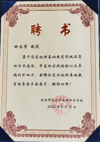 2025年6月15日,中国地理学会基础教育分会成立大会暨新时代地理基础教育高质量发展论坛在南京师范大学举行。中国地理学会党委书记陈发虎院士,中国地理学会副理事长、西南大学杨庆媛教授,中国地理学会监事、首都师范大学李小娟教授,南京师范大学校长华桂宏教授、袁林旺副校长,全国主要师范院校、地理相关院系领导以及从事地理教育相关工作的专家学者、研究生出席会议。成立大会由南京师范大学MILE米乐官方网站党委书记苏锦主持。会上,南京师范大学MILE米乐官方网站院长黄昌春教授宣读了“南京师范大学地理基础教育指导委员会”成员名单。指导委员会常务副主任、南京师范大学赵媛教授在发言中阐述了该委员会成立的必要性,强调委员会将有效弥合高等教育前沿研究与基础教育实践之间的鸿沟,推动前沿成果向课程内容的转化。她表示,学校及地科院高度重视这项工作,专门成立了由陈发虎院士、袁林旺副校长领衔、多领域专家组成的指导委员会,旨在打造地理教育“思想库”与“智囊团”,凝聚高校、中小学及科研机构力量,共同服务地理基础教育高质量发展与学科繁荣。米乐官网徐宝芳教授聘任为南京师范大学地理基础教育指导委员会委员。