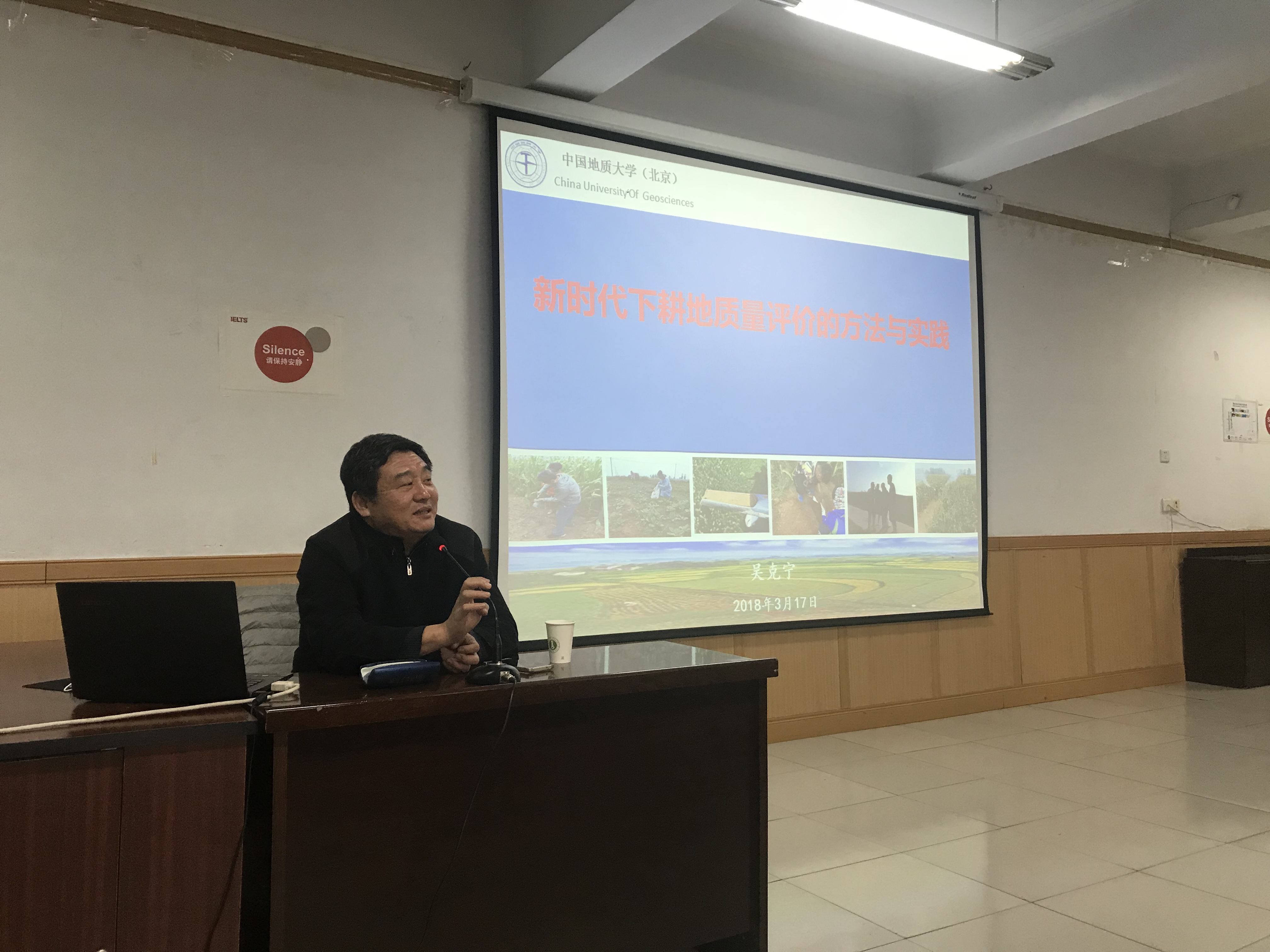 应MILE米乐官方网站邀请,中国地质大学土地科学技术学院教授、中国土地学会常务理事、学术工作委员会副主任、中国土壤学会常务理事、土壤发生分类与土壤地理专业委员会副主任,北京市土壤学会副理事长、教育部公共管理教学指导委员会土地资源管理分委员会副主任吴克宁于2018年3月17日下午在文史楼1号会议室,做了题为《新时代下耕地质量评价的方法与实践》的学术报告。MILE米乐官方网站副院长张裕凤教授主持讲座,学院部分老师和全体二、三年级研究生同学聆听了讲座。吴克宁教授详细讲授我国的耕地质量评价概况、耕地占补平衡管理总体形势、耕地质量综合评价与产能核算和对当前第三次土地调查关于耕地调查评价的建议,并与老师和研究生同学们就土地质量评价和当下相关土地政策等内容进行互动交流。通过此次学术报告,老师和同学们对耕地质量的评价方法、产能核算、占补平衡政策等内容有了深刻的认识。