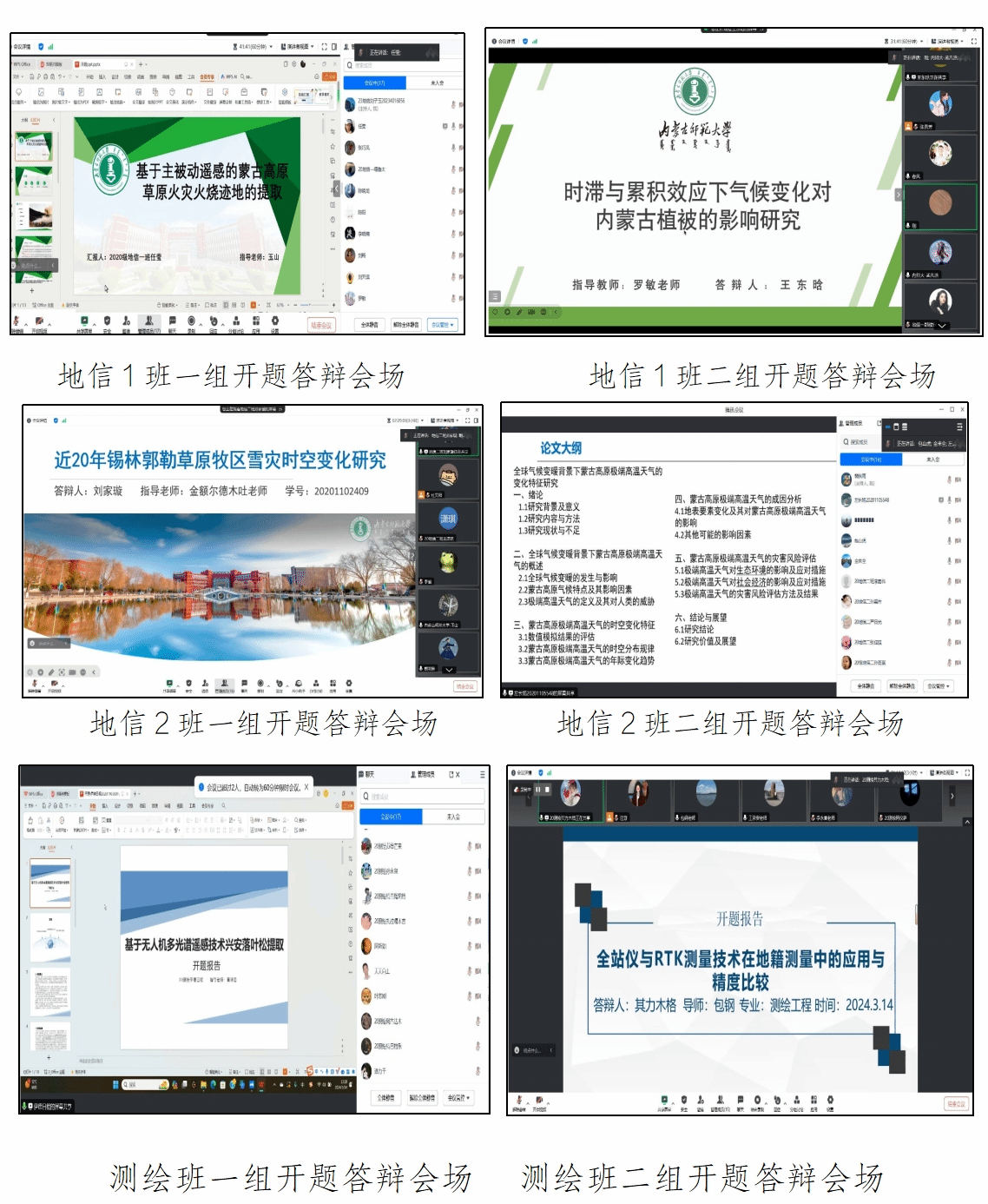 测绘与地理信息科学系根据学校《关于做好2024届本科生毕业论文(设计)工作的通知》文件精神以及MILE米乐官方网站本科生毕业论文(设计)要求,2024年3月14日在线上对2020级地理信息科学专业和测绘工程专业的本科生毕业论文(设计)举行了开题答辩工作,参加此次本科毕业论文开题答辩的共有86名本科生,分6组进行,测绘与地理信息科学系18名教师担当评委。