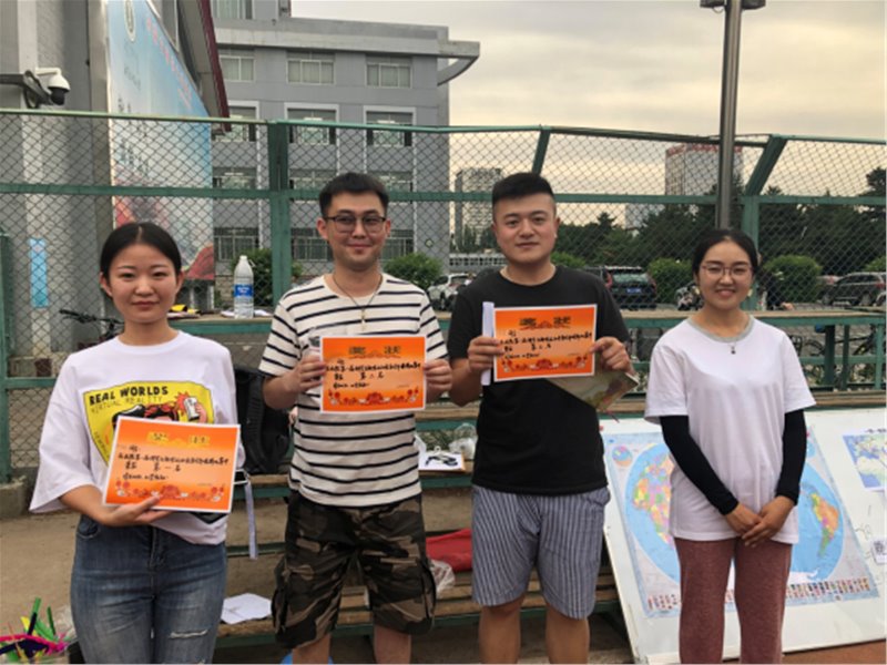 本届运动会既趣味十足又不失专业特色。运动会共设六个项目,分别是单人项目:跳绳、慢骑自行车、踢毽球,双人项目:你来比划我来猜,团体项目:夹乒乓球、“一带一路”行走记等。其中最激烈的要属“一带一路”行走记项目。该活动以“一带一路”项目为背景,结合相关地理知识,同学们要在几十个沿线国家中准确挑选出地图标记的主要国家,并将其精准的贴在地图展板上。同学们在默契的配合下,都取得了良好的成绩。