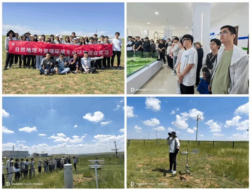 7月3日上午,同学们抵达本次环境综合实习的首站——内蒙古阴山北麓草原生态水文国家野外科学观测站。大家首先通过视频和讲解,系统了解了观测站的基本概况及其在生态环境领域的重要意义。随后,在工作人员的带领下,同学们实地参观了整个观测站,逐一了解土壤、水文、大气、生态等要素的监测仪器及工作原理。参观过程中,老师们结合区域地理特征与生态研究实际,进行了细致且专业的补充说明,让理论知识与实地应用的衔接更加紧密。