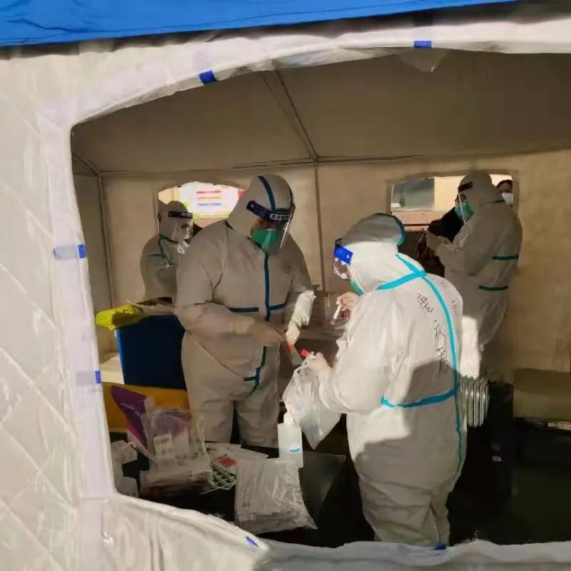 蔚茹 2021级地理科学汉授二班 在内蒙古自治区呼和浩特市赛罕区中专路街道鄂尔多斯东街14号竹园小区社区服务站第五轮全体核酸检测中,担任组织部志愿者,有序组织群众间隔排队、出示健康码和身份证,避免群众聚集,在登记窗口和检测窗口喷洒消毒水确保检测的安全进行。