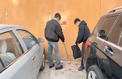 在社区内,志愿者们身着红马甲,手持扫帚、垃圾钳等清洁工具,分工协作、干劲十足。清扫树叶、整理非机动车、擦拭公共设施……从主干道到绿化带,从楼道角落到停车区域,每一处都留下同学们忙碌的身影。经过同学们的辛苦劳动,社区道路焕然一新,车辆摆放井然有序,居民纷纷驻足点赞。